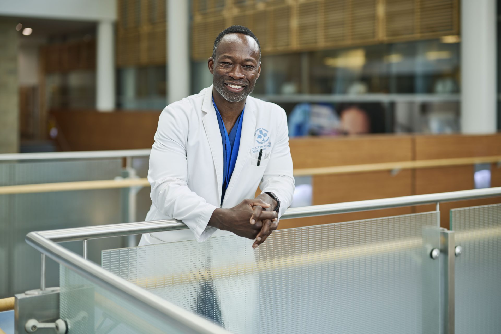 Dr. Kyeremanteng “grew up with some pretty bad asthma” that caused trouble breathing and required hospitalizations, he says—a scary experience for both patient and parents. It was an anxious time for the family. But his physician’s presence, he says, “would just ease everything”.